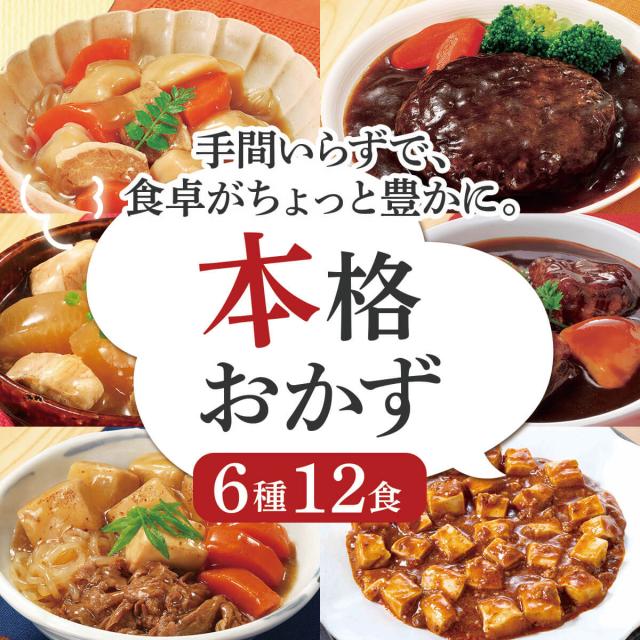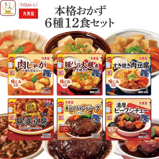 母の日 レトルト食品 詰め合わせ 常温 惣菜 本格 おかず 6種12食 セット 【 送料無料 沖縄以外】 丸美屋 レトルト レンジ で簡単 お惣菜 肉 野菜 煮物 ハンバーグ 肉じゃが 麻婆豆腐 一人暮らし ご飯 備蓄 保存食 2026 新生活 内祝い ギフト