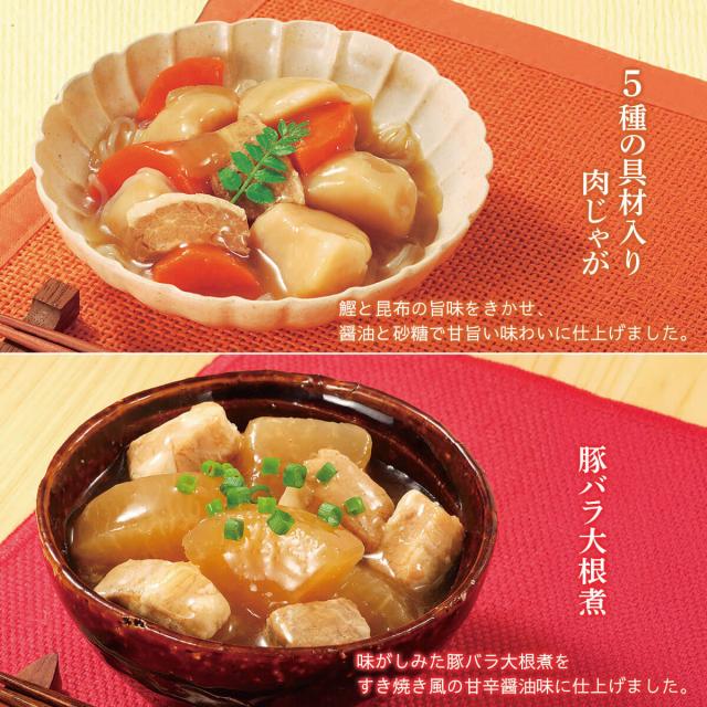 ■ レンジDELI 5種の具材入り肉じゃが 200g 豚バラ大根煮 180g すき焼き肉豆腐 180g 贅を味わう麻婆豆腐中辛 200g 煮込みハンバーグ 190g 濃厚ビーフシチュー 170g 6種 各2食 合計12食 |