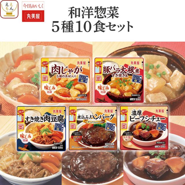 レトルト食品 詰め合わせ 常温 和風 洋風 惣菜 おかず 5種10食 セット 【 送料無料 沖縄以外】 丸美屋 レトルト ハンバーグ シチュー 肉じゃが お惣菜 肉 野菜 煮物 ご飯のお供 一人暮らし ご飯 備蓄 保存食 お年賀 2026 帰省 お土産 ギフト