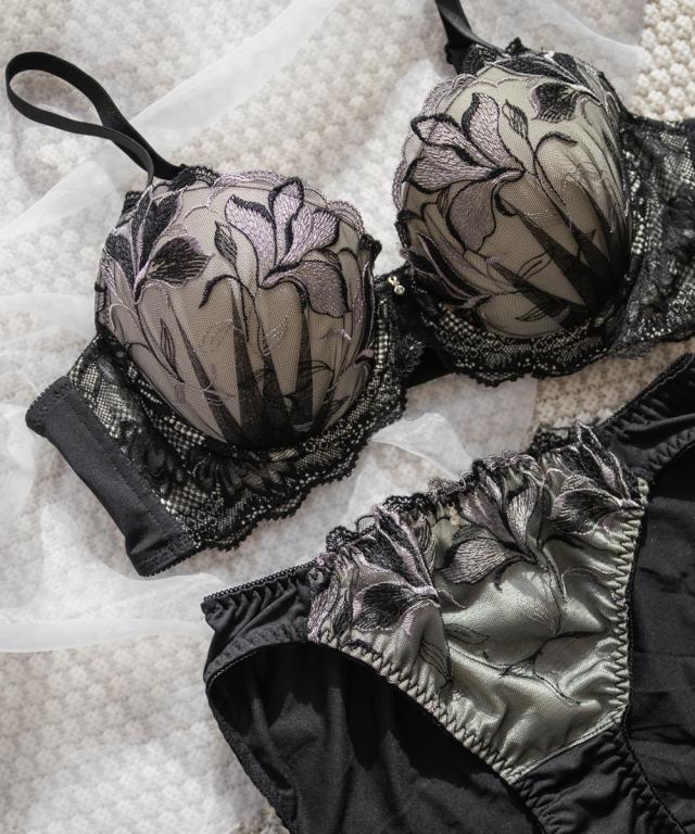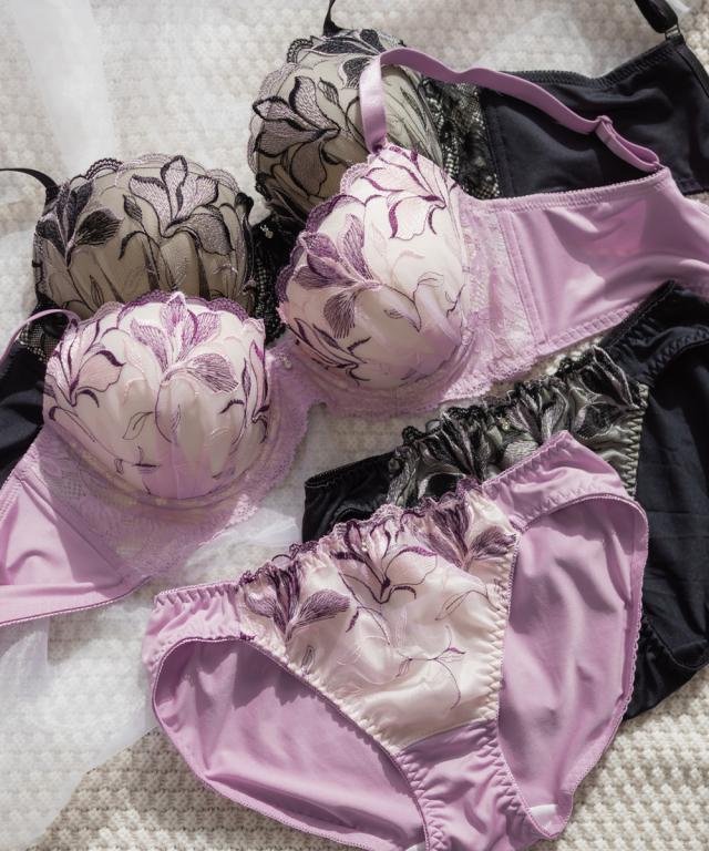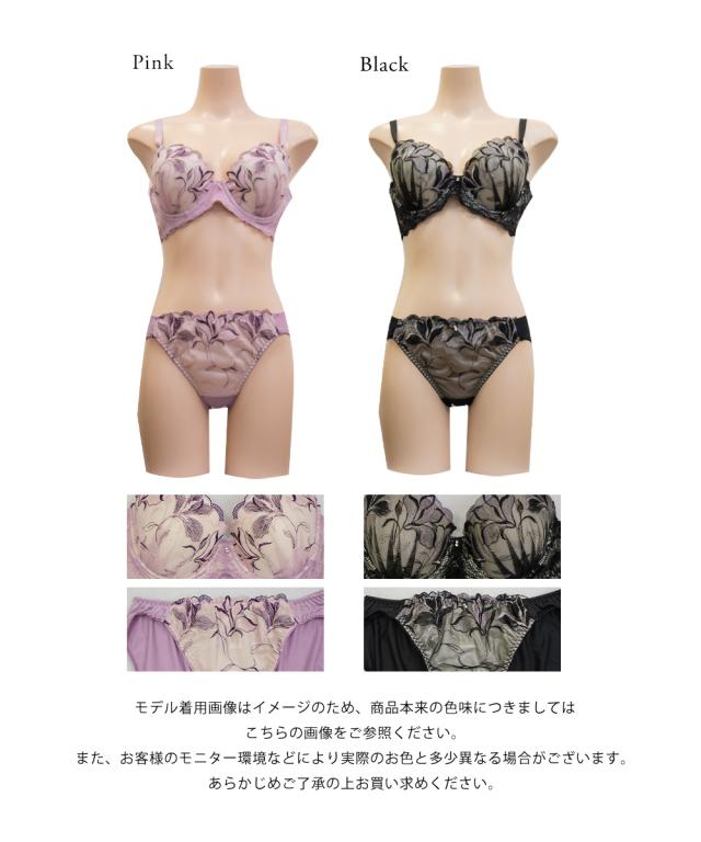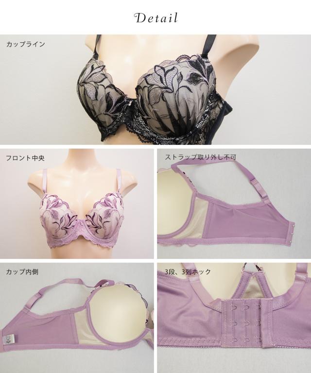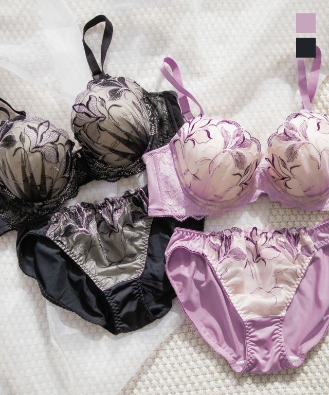 大きいサイズ/レディース/D85/D90/D95/E85/E90/E95/F85/F90/F95/G85/G90/G95/脇高エレガンスリリー刺繍ブラジャー&ショーツセット