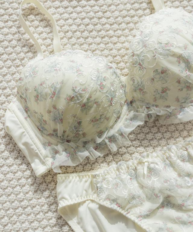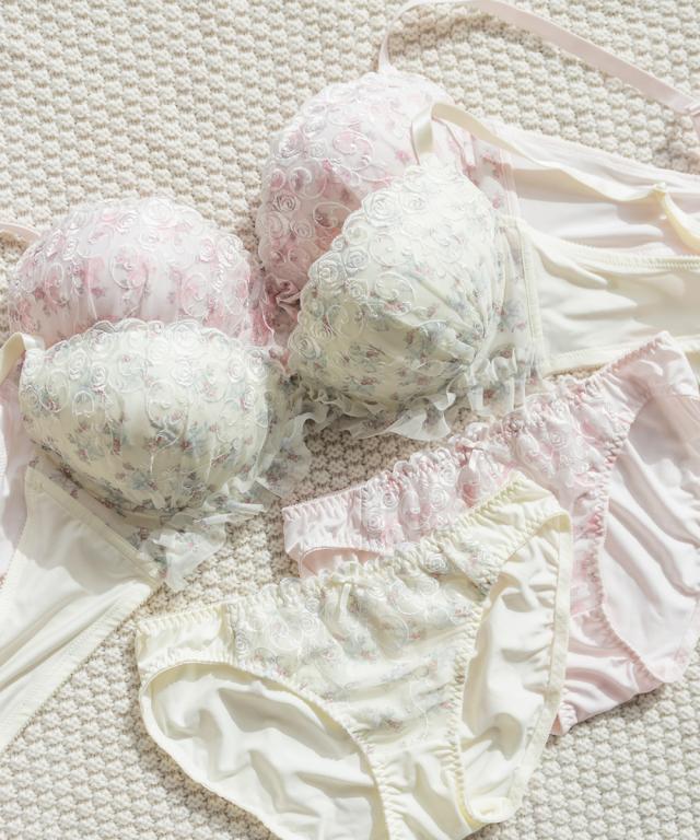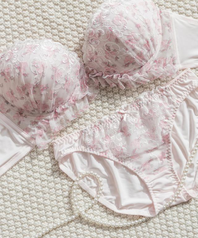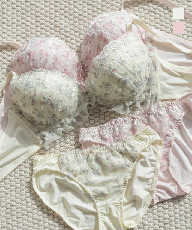 大きいサイズ/レディース/D85/D90/D95/E85/E90/E95/F85/F90/F95/G85/G90/G95/ローズレースフリルブラジャー&ショーツセット