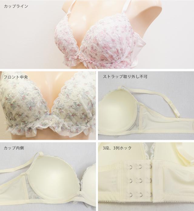 | 【カップタイプ】3/4カップ・モールドカップ(丸みを形成した厚みのあるカップです)、【ホックの数】3段3列、【パット付属】なし、【パットポケット】なし、【ストラップ取外し】不可、【ワイヤー】あり、※タンブル乾燥禁止 |