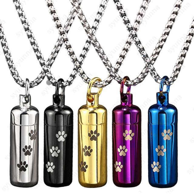 gh36#ペット 遺骨カプセル 日本国内当日発送 5色 遺骨ペンダント ペット用メモリアル ネックレス ペット仏具 分骨 骨壷 メモリアルペンダント 足跡