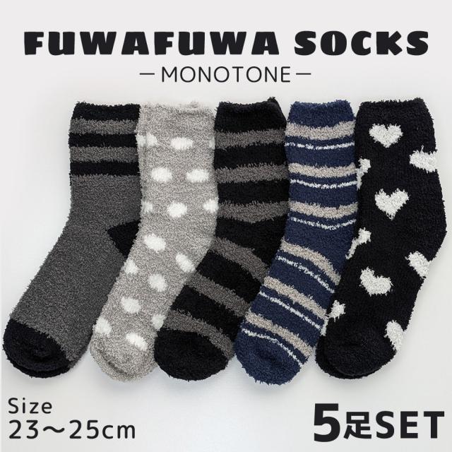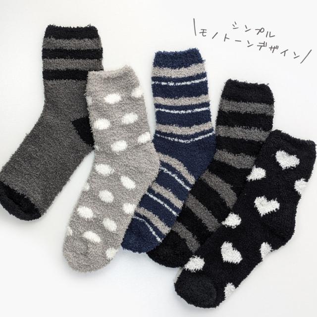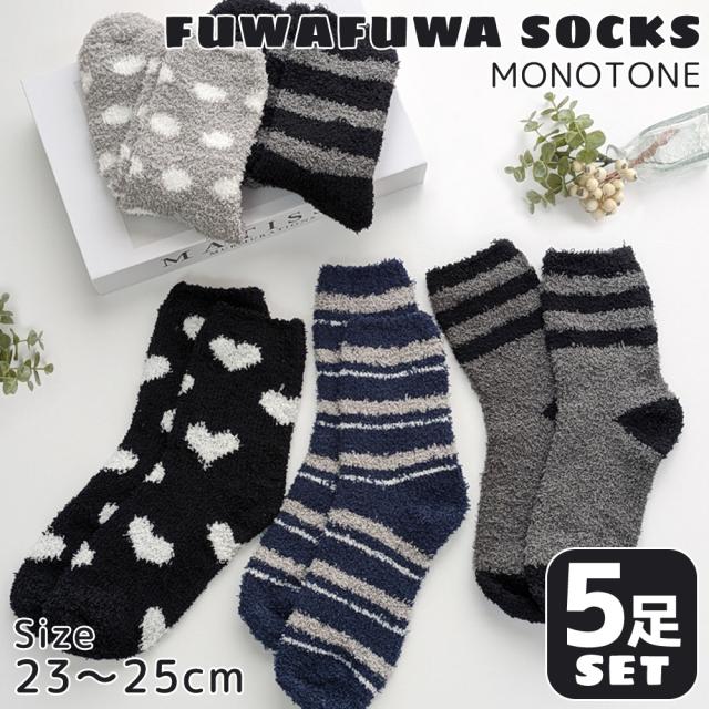 レディース 靴下 ソックス あったか 5足セット モノトーン クルー丈 ふわふわ 暖かい シンプル かわいい おしゃれ 冷え性 防寒 ルームソックス もっちり