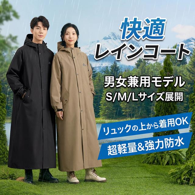 - 徹底防水と透湿素材で雨をしっかり防ぎつつムレにくい、通勤・通学・自転車に最適なロングレインコートです。