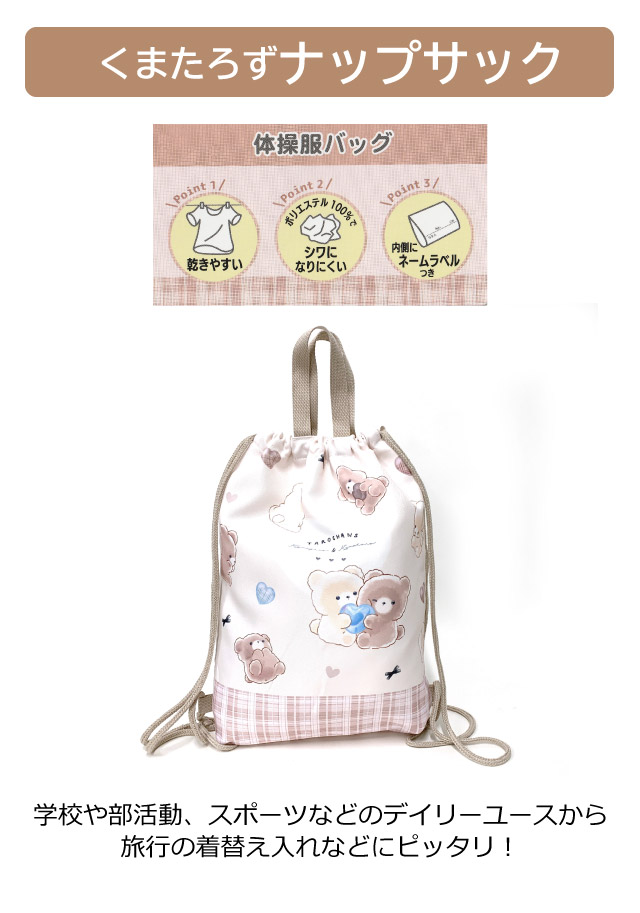 体操服入れ ナップサック 女の子 くま テディ 小学生 女子 体操着入れ 体操服バッグ ランドセルの上から ナップザック 体操着 キッズ 子供用 リュック 巾着 子供 かわいい 小学生 プールバッグ ナイロン 修学旅行 林間学校 水泳バッグ サブバッグ 入学準備 入学グッズ 入園