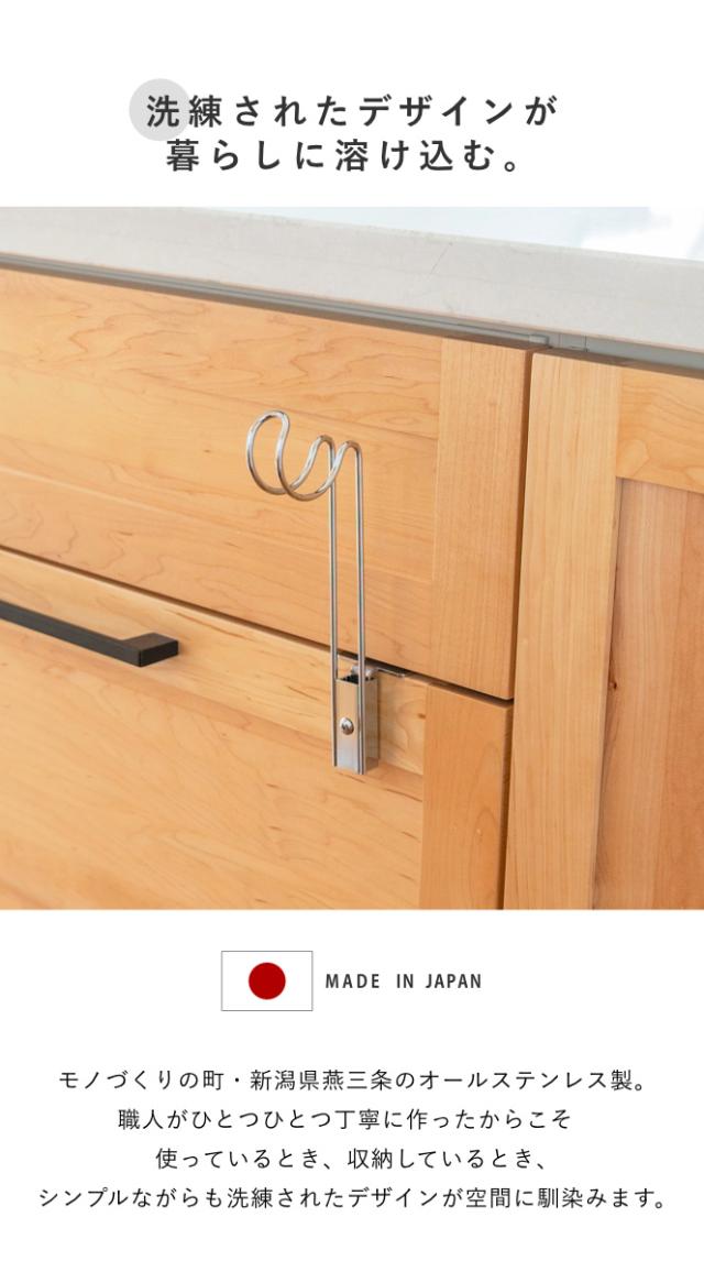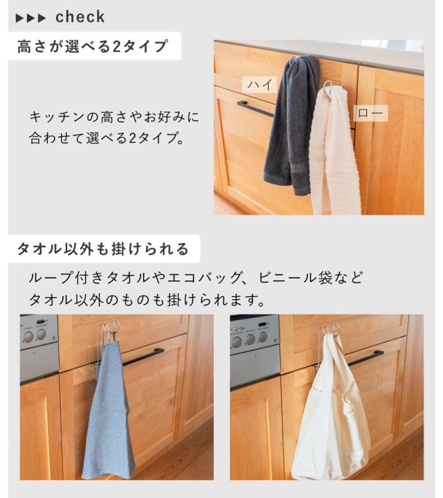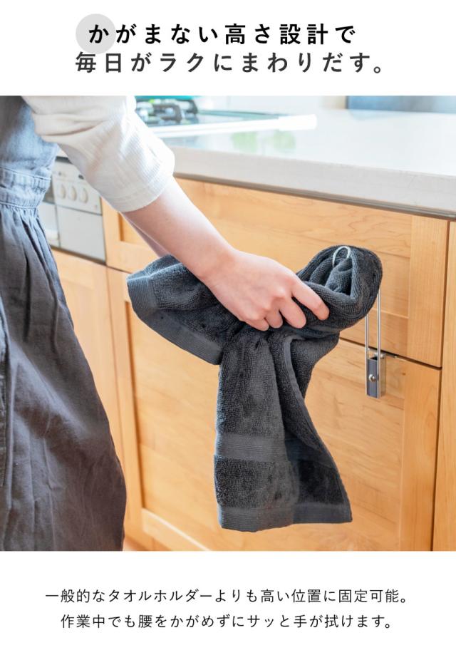 タオル掛け ビーワーススタイル すっきり暮らす 浮いてみえる タオルホルダー ロータイプ ( タオルハンガー ステンレス 日本製 コンパクト ホルダー 袋掛け ふきん掛け キッチン収納 引掛け 引出し 扉 取付け )