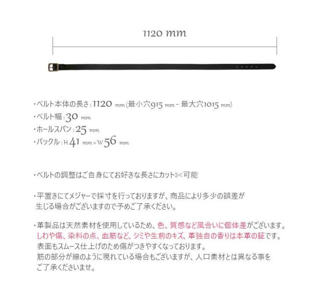| ベルト長さ | 長さ112cm×幅3cm 最小穴まで:91.5cm×最大穴まで:101.5cm ホールスパン:2.5cm |