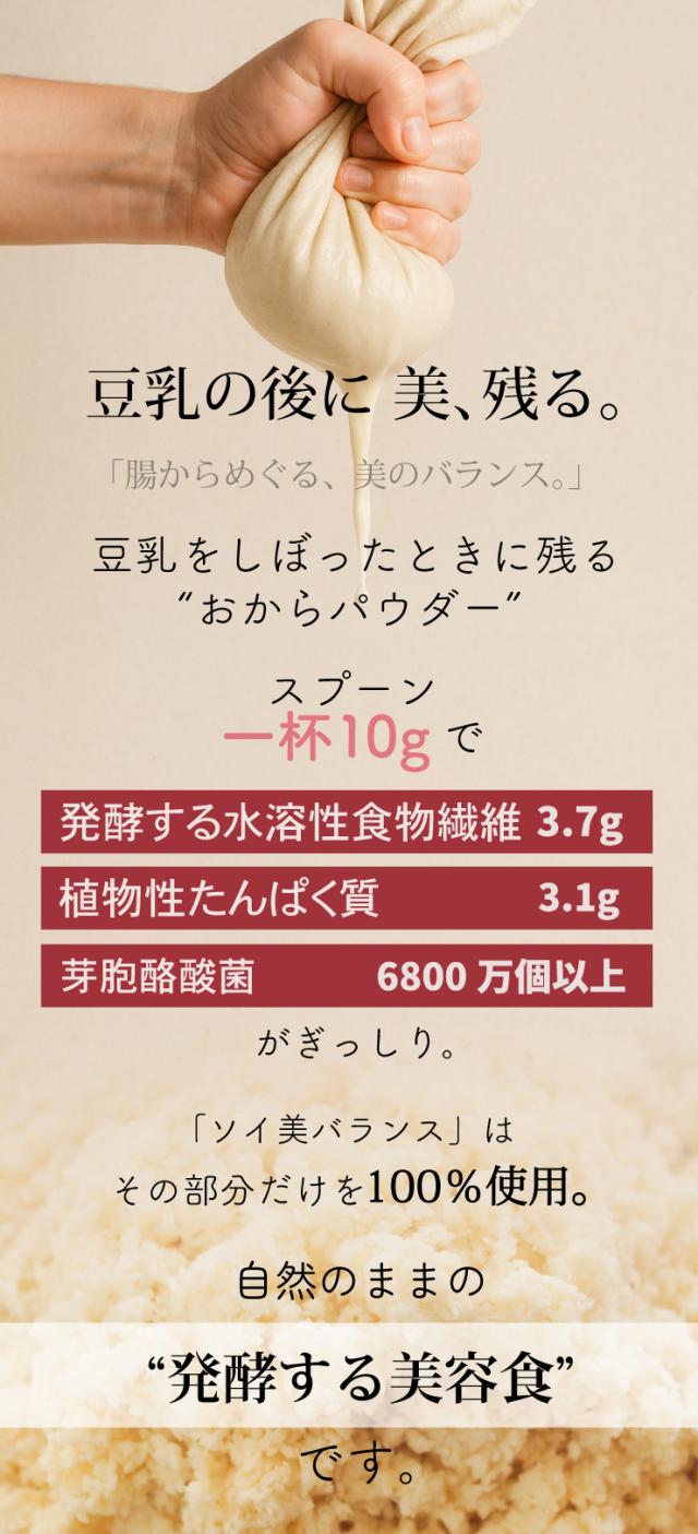 SOY美BALANCE 生きた酪酸菌と発酵性食物繊維たっぷりのたんぱく質パウダー 500g 発酵性食物繊維 ソイプロテイン おからパウダー 美容 植物性たんぱく質 腸活 美肌 豆乳 たんぱく質 パウダー 大豆 無添加
