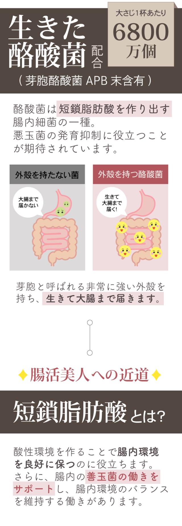 ■原材料:大豆(国内製造)、芽胞酪酸菌(一部に乳成分、大豆を含む)