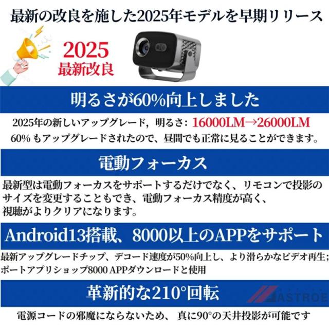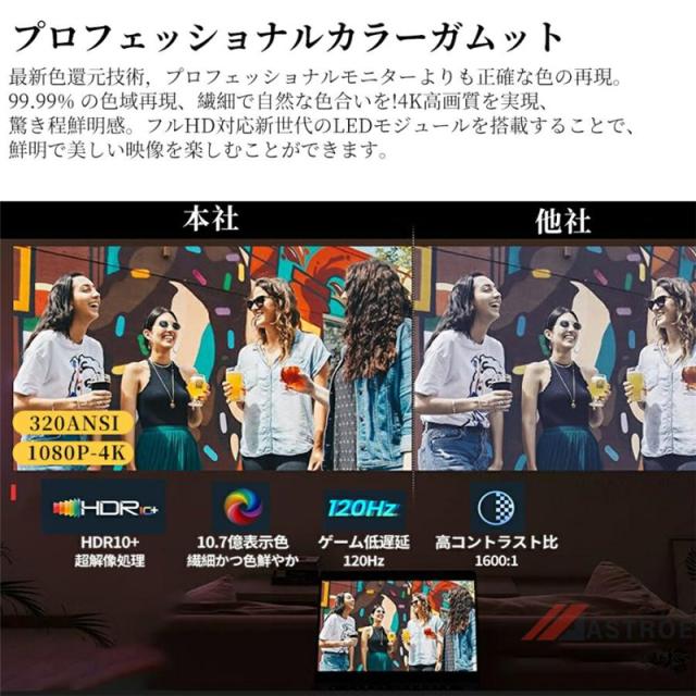 このスマートプロジェクターは自動台形補正技術,横置きでも斜め置きでも、垂直方向の自動台形補正機能により、傾いた画像を自動的に補正し;電動フォーカス技術搭載、わずか数秒で完璧な画像が得られます;このポータブルプロジェクターは短距離投影も備えており、投影距離は1〜5メートル、40〜250インチの大型スクリーンに対応している