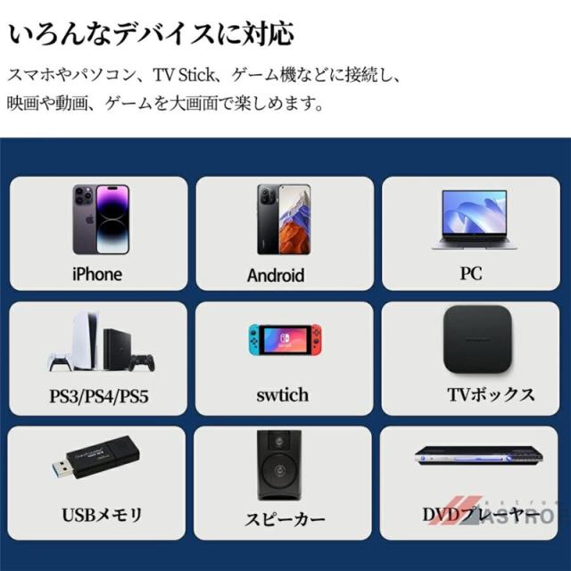 26000ルーメンの高輝度で、鮮やかでクリアな映像を映し出します。フルHD解像度に対応し、細部までくっきりと描写され、豊かな色彩でまるで映画館のような臨場感をお楽しみいただけます。投影サイズは40〜250インチに対応しており、大画面で高画質のホームシアター体験を実現します。