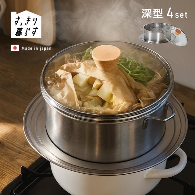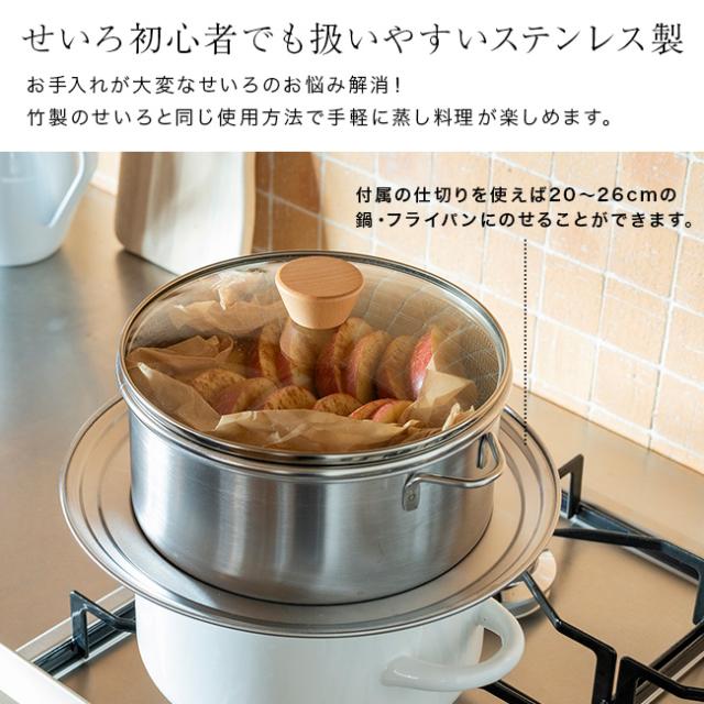 すっきり暮らす ステンレスせいろ 深型 仕切り付き 4点セット(せいろ 蒸し器 ステンレス ステンレス製 蒸籠)