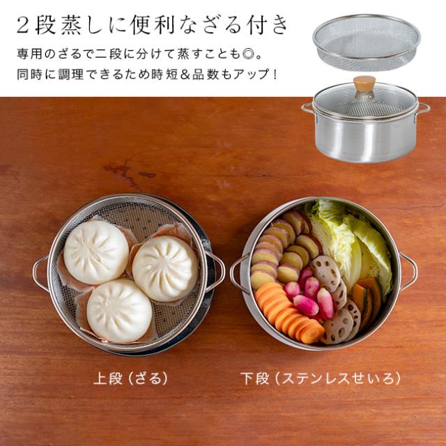 ・専用のざるで二段に分けて蒸すことも可能。