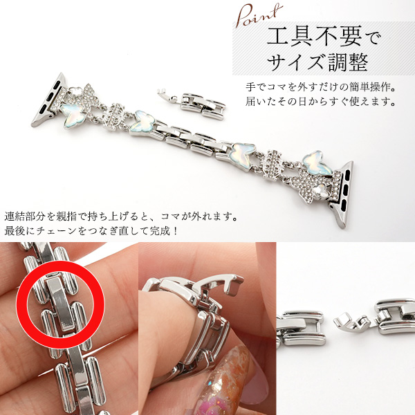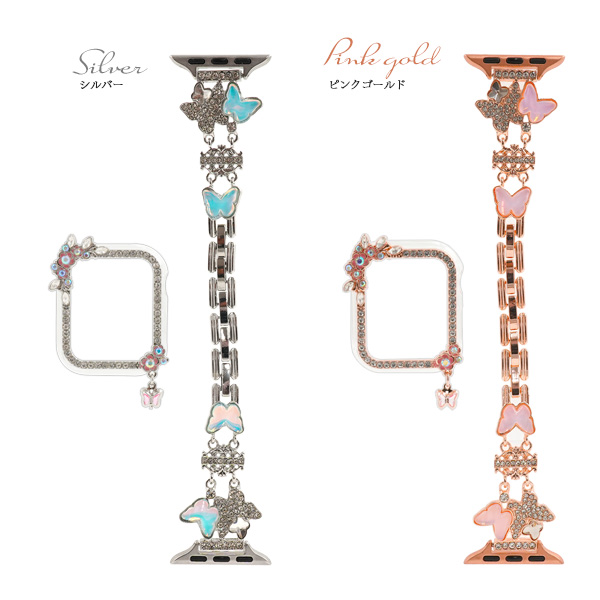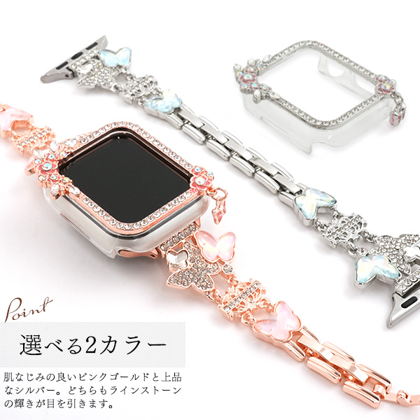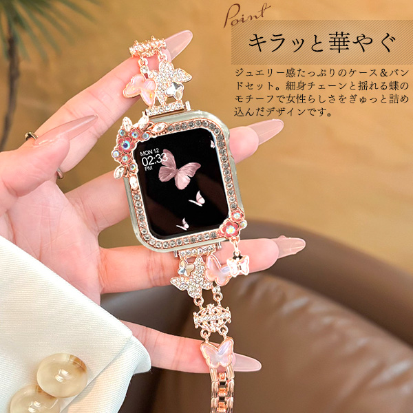 アップルウォッチ用 バンド+ケースセット 蝶タイプ きらきら お洒落 華やか 着せ替えバンド 蝶々 バタフライ Apple Watch ベルト 工具不要 サイズ調整可 装着簡単 アップルウォッチベルト スマートウォッチベルト スマートウオッチベルト 交換用バンド