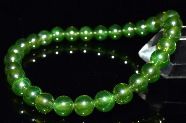【1点物】6条スター スターグリーンサファイア(合成コランダム) 6mm ブレスレット 金運・仕事運_MC2616