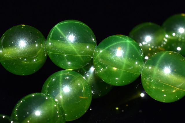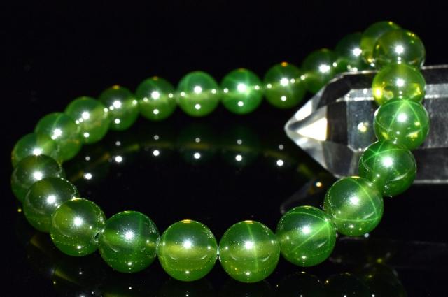 【1点物】6条スター スターグリーンサファイア(合成コランダム) 8mm ブレスレット 金運・仕事運【ネコポス送料無料】_MC2619