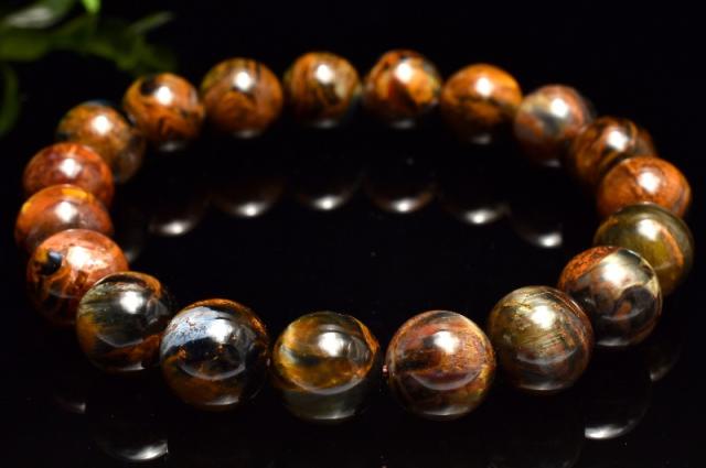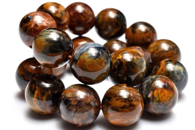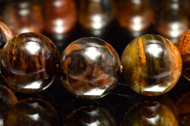 | 特徴・意味 | 幻想的なシャトヤンシーがとても美しいです。 1粒1粒異なったマーブル模様がなんとも美しく上質です。 タイガーアイとはまた違うベルベットな雰囲気を彷彿させる上品さがあり、見る人を惹き付けます。 1962年、南アフリカのナミビアで、シッド・ピータースによって発見された新しい石。 タイガーアイやブルータイガーアイが地殻変動で崩れた後、再度石英で固まったものです。 一般的にはタイガーアイ系の茶褐色が多いですが、ブルータイガーの青系もあり、茶と青の混じったものもあります。 独特の粉々になった模様が嵐のようだというので、テンペストストーン(嵐の石)とも呼ばれます。 タイガーアイは、石英(せきえい)の中に、青い石綿が入ったもので、めのうの仲間です。 これが地熱で温まり、黄色になったのが、タイガーアイです。 ブルータイガーアイの一筋の光が、一度崩れたことによって、あちこちを向いて輝いていて、神秘的な感じになっています。 渋くて不思議なものが好きな方には、たまらないかも。 どこかのブランド物の織物のようです。 地殻や自然の激しい動きにさらされた石は、困難を切り抜ける知恵を持っています。 ピーターサイトは、めちゃくちゃになった物事を、再度作り上げ、昇華していこうとする人に、援助を惜しまない石です。 ブルータイガーアイよりも、さらに強いエネルギーを求めたい人におすすめ。 |