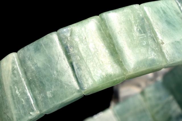 | 特徴・意味 | 特有の繊維状結晶が美しく、透け感もあるミントグリーンのカラーが魅力的です。 ファッション性にも優れています。 カイヤナイトは和名を藍晶石(らんしょうせき)と言います。 こちらはグリーンカラータイプです。 この緑はバナジウムを微量に含むことによる発色要因のようです。 カイヤナイトの中でも鮮やかで発色が良く、透明感を持つものほど高品質です。 カイヤナイトをよく観察してみると、何本ものラインが見えますが、これは一定の方向に入った結晶が何重にも重なった層のように見えています。 この層に対して、どの方向から力を与えるかによって硬度が変わってきます。 この性質から二硬石(ディスシーン:Disthene)と呼ばれ、これにより、加工が大変難しくなっています。 カイヤナイトの語源はギリシャ語で「青色」を意味する「kyanos」からきています。 ※青だけでなく、グリーン、グレー、イエロー、ピンクなど様々な色のカイヤナイトがありますが、主に流通しているのはブルーやグリーンのタイプが多いようです。 |