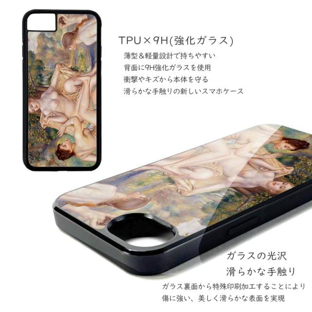 スマホケース 背面ガラス iPhone 17 iPhone 16e SE 第3世代 バンパーケース デザイン 強化ガラス MagSafe マグネット内臓 iPhone15 アイフォン ピエール=オーギュスト・ルノワール 絵画 名画 作品 グッズ ルノワール 印象派 可愛いイレーヌ ダンス三部作