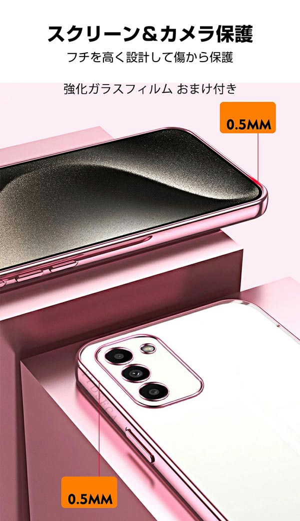 OPPO A5 5G (CPH2735) ケース クリア カバー 耐衝撃 カバークリア 透明 メッキ TPU ソフトケース ストラップ穴 かわいい 可愛い お洒落 ストラップホール付 オッポ A5 5G CPH2735 スマフォ スマホ スマートフォンケース/カバー 強化ガラス付き