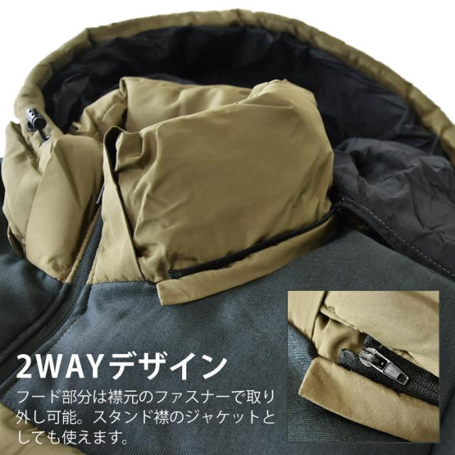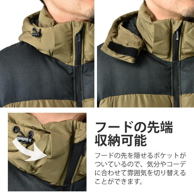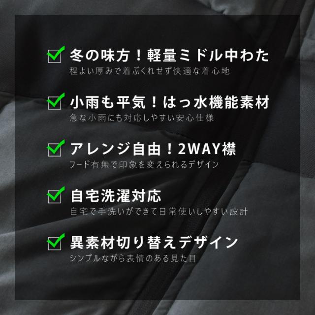 中わたジャケット メンズ ミドルボリューム 保温 はっ水 軽量 自宅洗濯可能 2WAYスタイル スタンド襟 フード 切り替え【A2L】【送料無料】 冬新作_冬