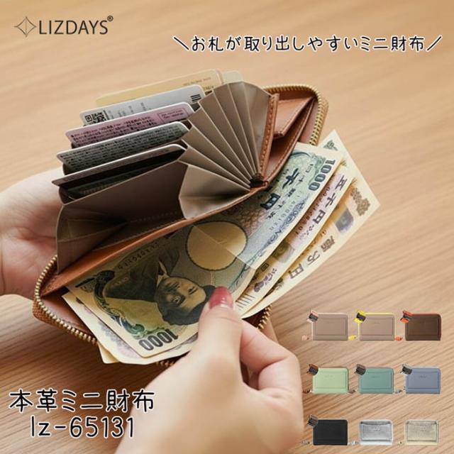 LIZDAYS 本革 ミニ財布 お札をスムーズに出し入れ サイドオープン スライド じゃばらカードポケット ボックス型小銭入れ ラウンドファスナー 牛革 内地 マイクロファイバーレザー スキミング防止機能 コンパクト レディース 軽量 上質牛革 スタイルオンバッグ