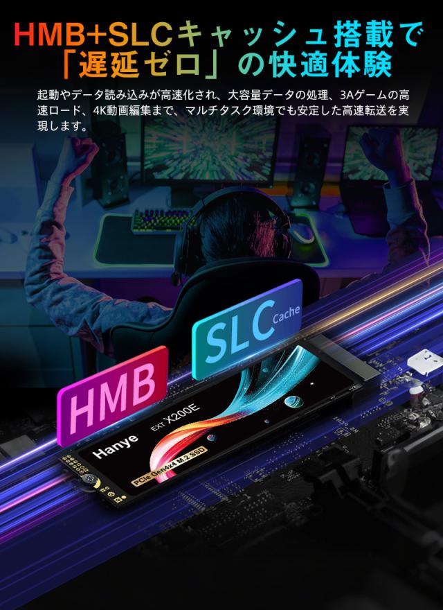 Hanye SSD 2TB PCIe Gen4x4 M.2 NVMe 2.0 2280 PS5 Pro/PS5 Slim/PS5動作確認済み R:7200MB/s W:6300MB/s 3D NAND グラフェン放熱シート付き 5年保証 ネコポス送料無料 ポイント消化