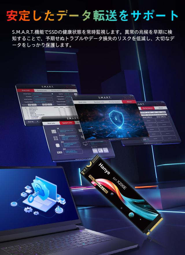 S.M.A.R.T.に対応し、SSDの健康状態を常時監視します。