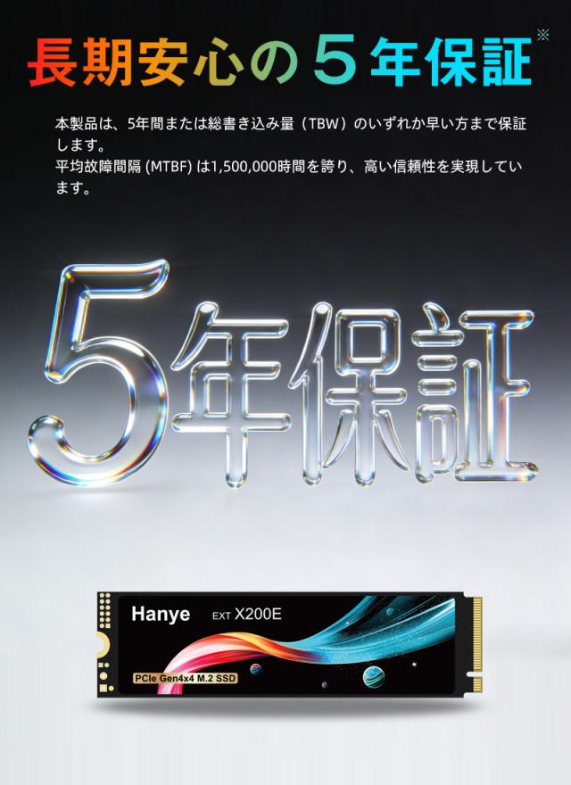 保証:当店5年保証/耐久性の上限(TBW)に達する ※いずれか短い期間まで