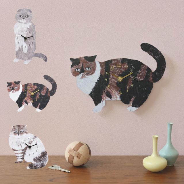 松尾ミユキ Diecut clock C|時計 ネコ インテリア ギフト おしゃれ 可愛い Matsuo Miyuki 掛け時計 猫 壁掛け ダイカット Cat オブジェ アート イラスト