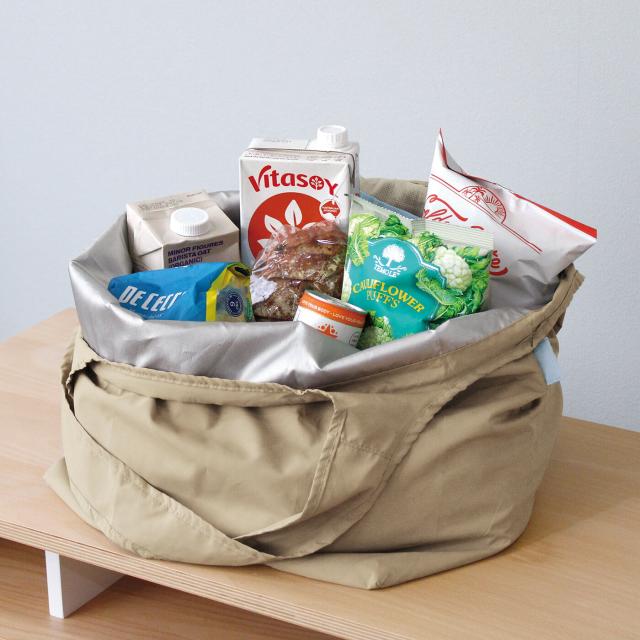 少量の買い物の時は巾着を絞って保冷・保温効果アップ、多いときは巾着を絞らずトートバッグのように使える便利な2WAY仕様です。