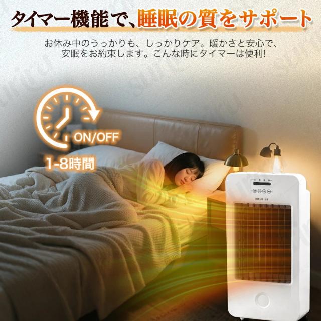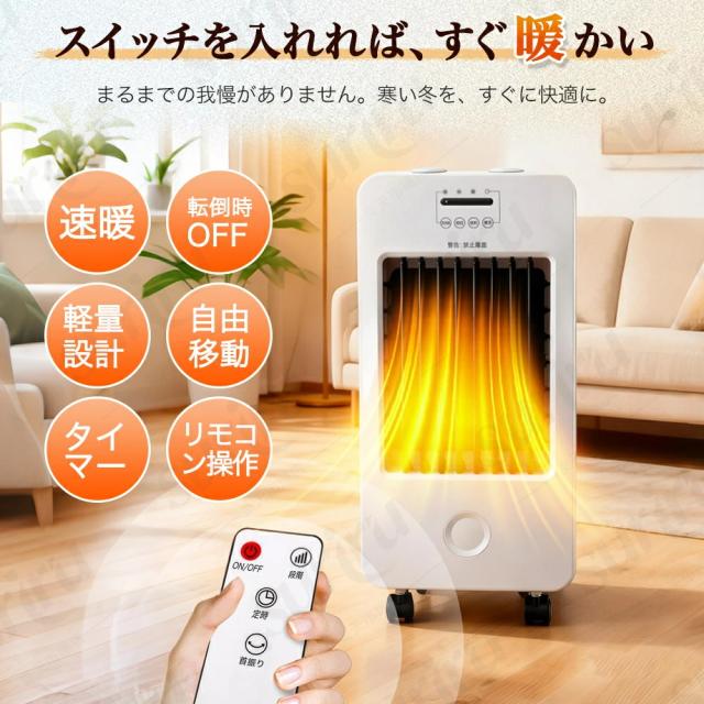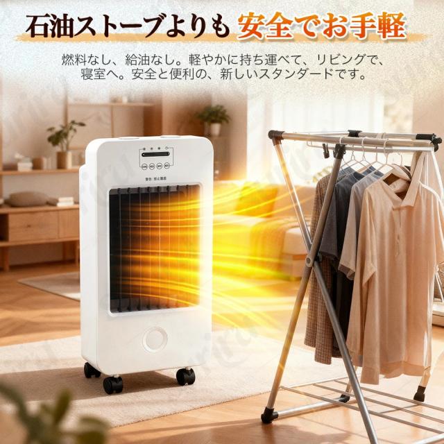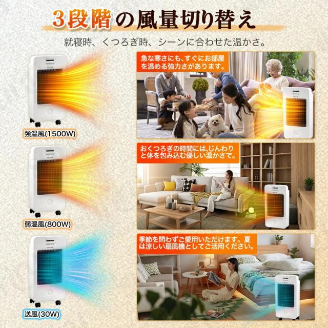即時暖房:高効率セラミック発熱体が、電源ONからわずか数秒で温風を送り出します。寒い日でもすぐに暖をとることができます。