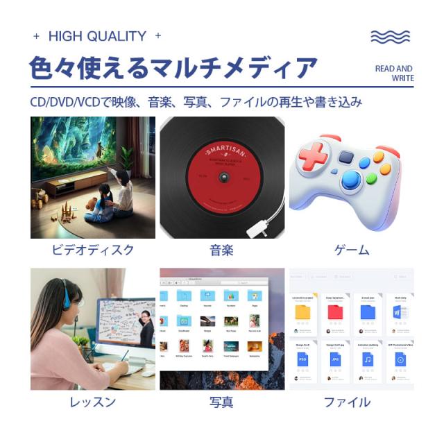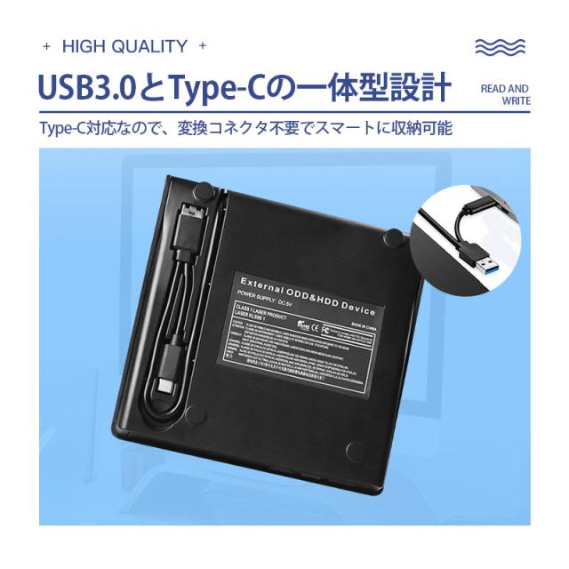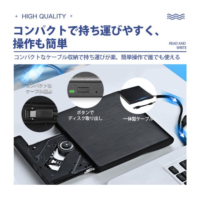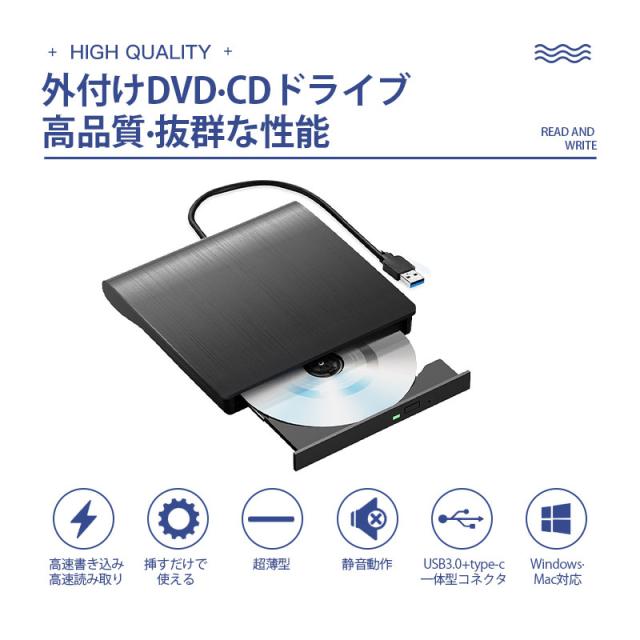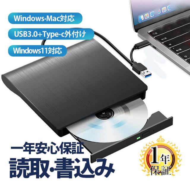 DVDドライブ 外付け USB 3.0 Type-C 1年保証 日本語説明書 CDドライブ ミニ 読み込み 書き込み対応 Wind