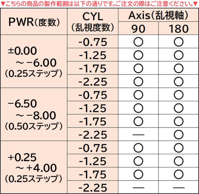 PWR(パワー):±0.00〜-6.00(0.25step)、