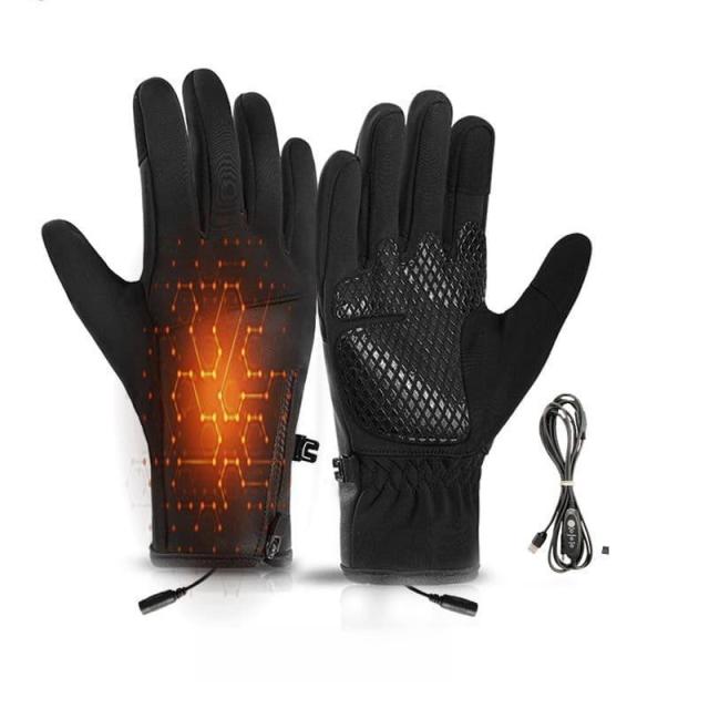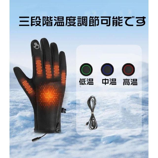 電熱手袋 ヒーター付き USB給電式 3段階温度調節 スマホ対応 男女兼用 撥水 ホットグローブ 電熱グローブ バイク 自転車