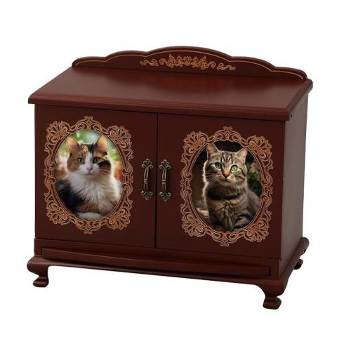 ペット仏壇 おしゃれ 仏具 2匹用 スライド扉 4寸 骨壺2個収納 ボルドー メモリアル 写真 スライドテーブル フォトフレーム HT-137 犬用 猫用 猫脚仏壇 スライド扉タイプ