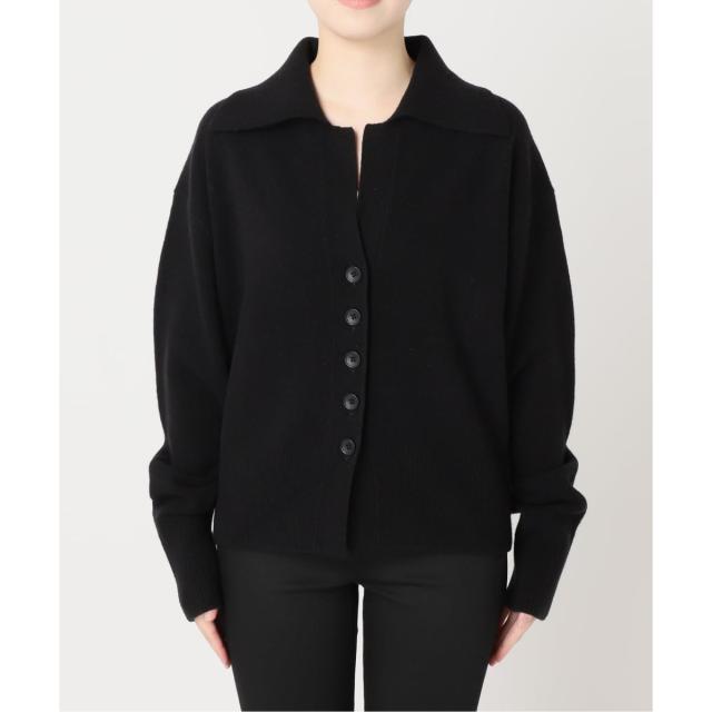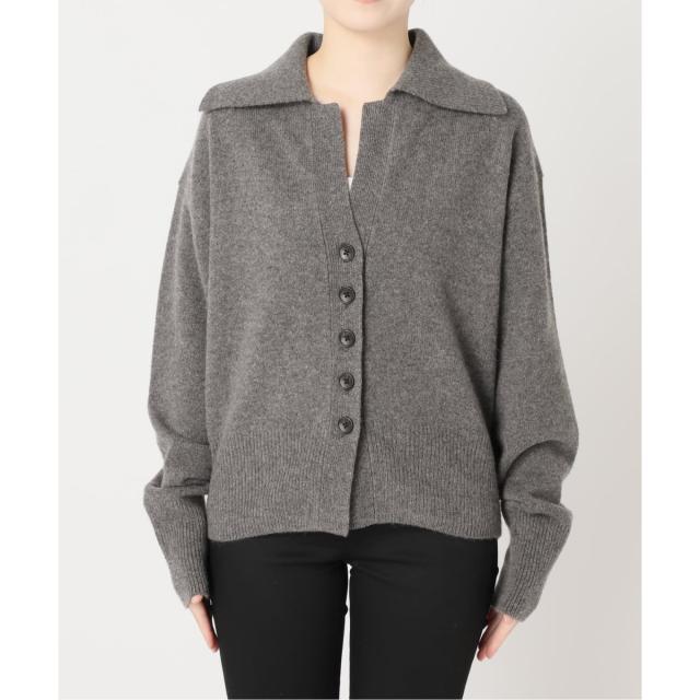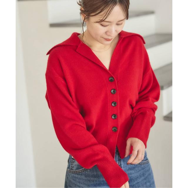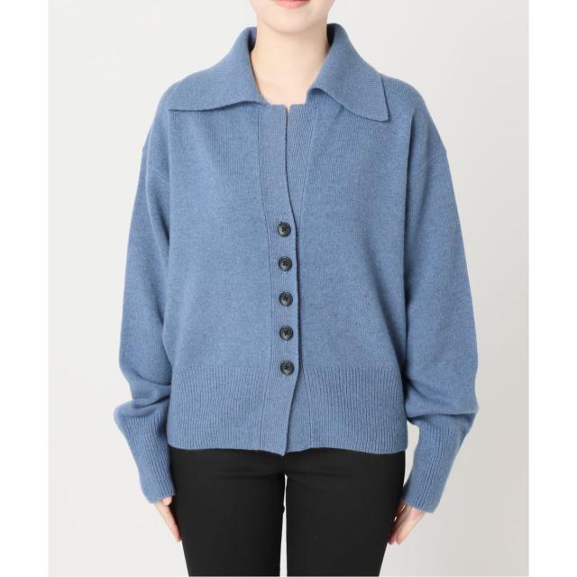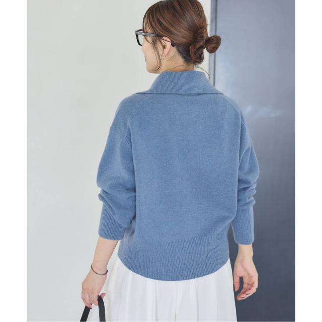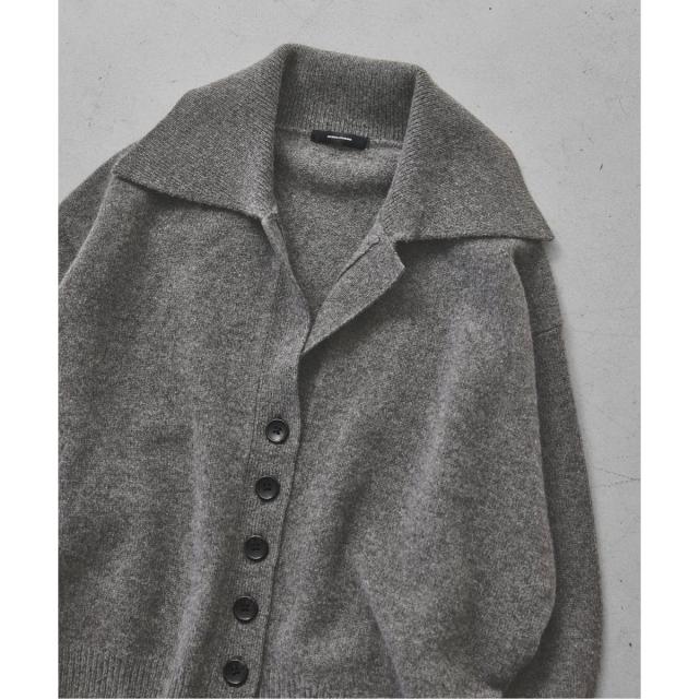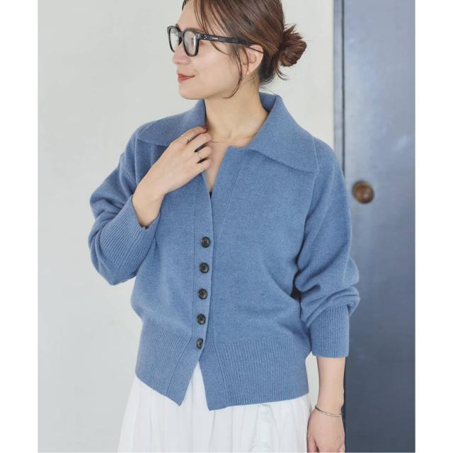 カシミヤ混の、もっちりとした柔らかい手触りの素材。1枚着でも、ジャケットやアウターのインでも使いやすい肉感です。羽織りとしても、釦を閉めて一枚着風にも着こなせるカーディガン型。スキッパープルオーバー風に着こなすのも素敵です。