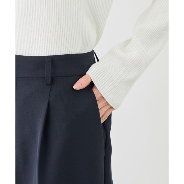 ・幅広ベルトラインでウエストをすっきり見せ、トップスインも様になるデザイン。