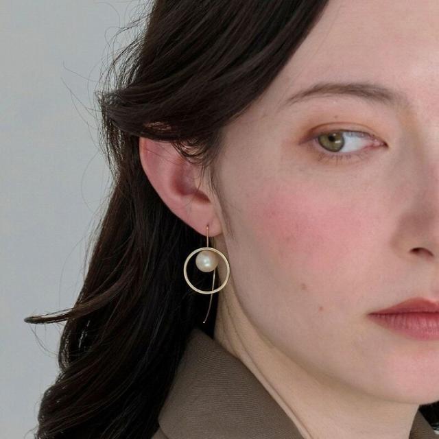 華奢なラインと、サークルリングに浮かんだようなパールの組み合わせがエレガントなデザインです。