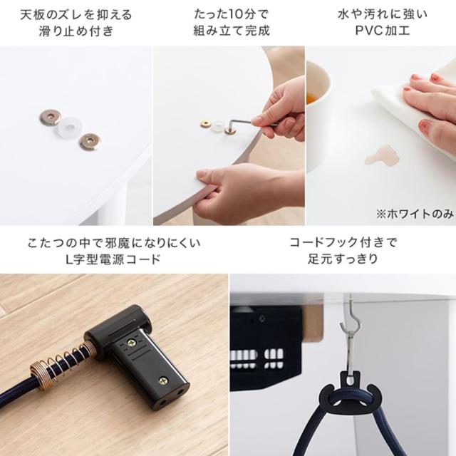 丸い形のこたつは角がなく、どこに座っても使いやすいのが特長。