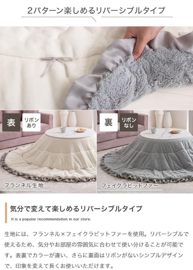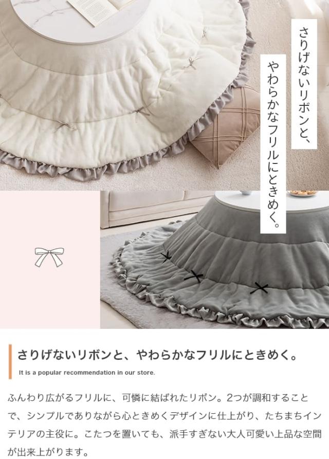 こたつ&リボン・フリル付き掛け布団2点セット 円形 こたつ こたつテーブル コタツ こたつセット 円形 丸型 布団セット