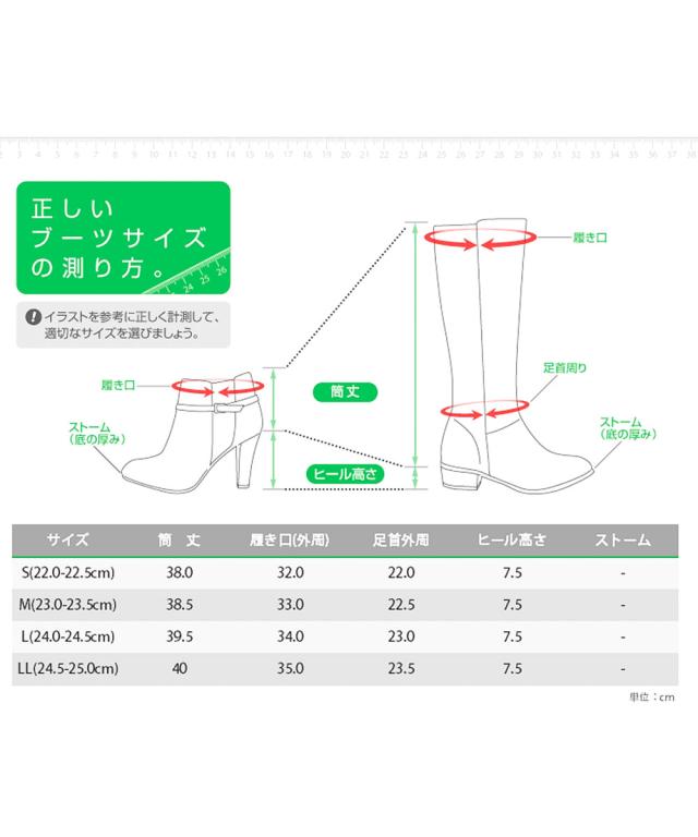 [筒丈(cm)]:S(38)|M(38.5)|L(39.5)|LL(40cm)
