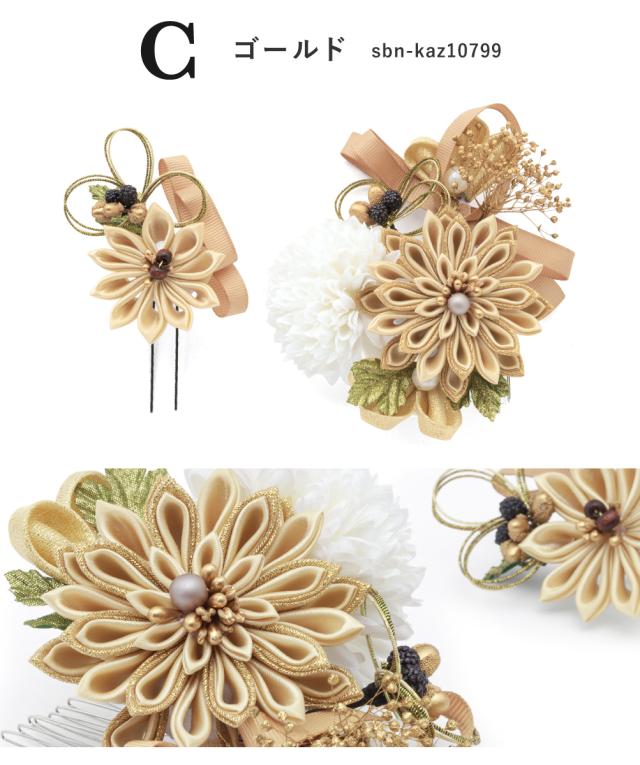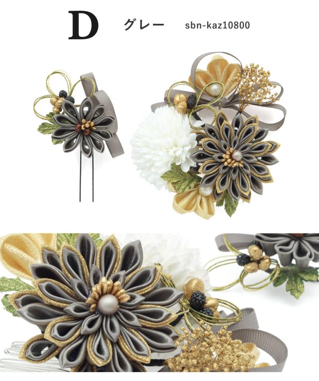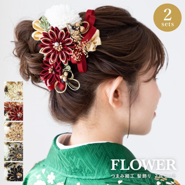髪飾り 2点セット 卒業式 成人式 振袖 袴 着物 ホワイト レッド ゴールド グレー ブラック 赤 黒 つまみ細工 水引 花 かすみ草 リボン 和洋兼用 盛装 ヘアアレンジ 振袖小物 和装小物 送料無料