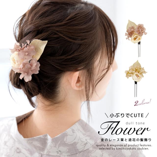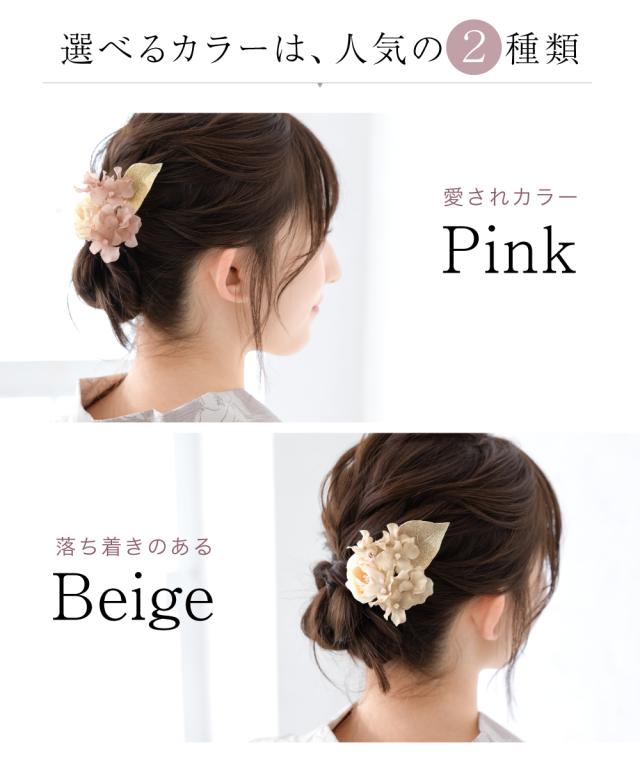 髪飾り 単品 卒業式 成人式 振袖 袴 浴衣 着物 ピンク ベージュ モダン ドライフラワー調 リーフ 小ぶり 小さめ ワンポイント ちょい足し 和洋兼用 盛装 ヘアアレンジ 振袖小物 和装小物