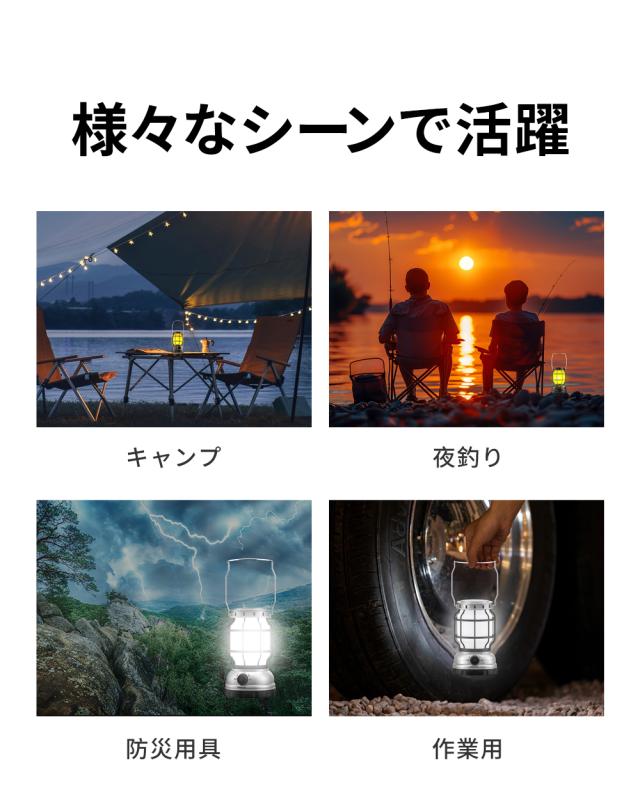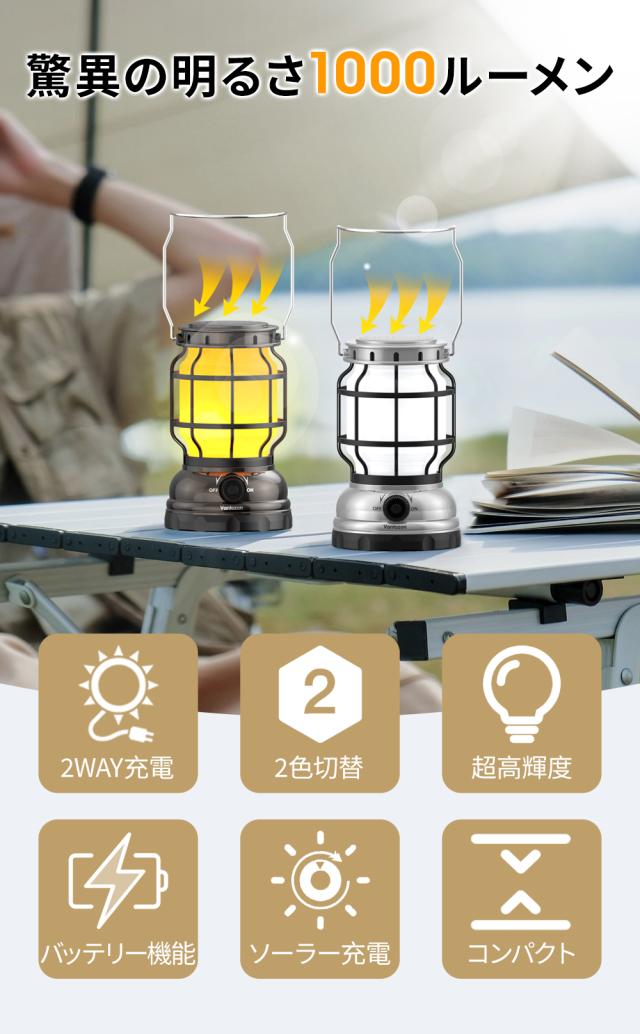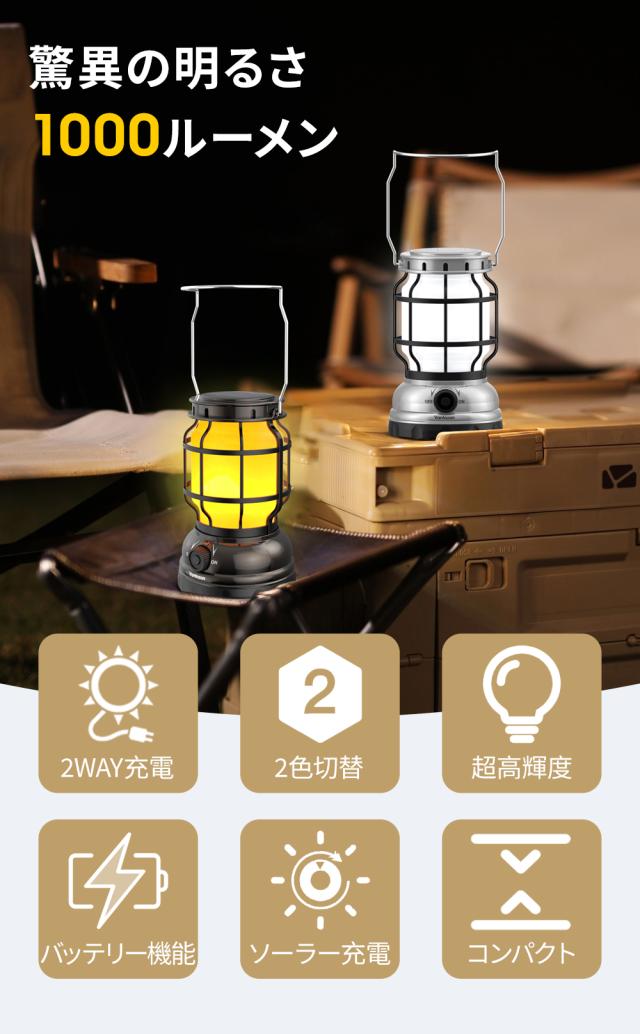 ●最大1,000ルーメンの高輝度で、360°全体を照らします。暗闇でも昼間のような明るさを実現。キャンプのメインランタンや停電時の非常用ライトとして最適です。