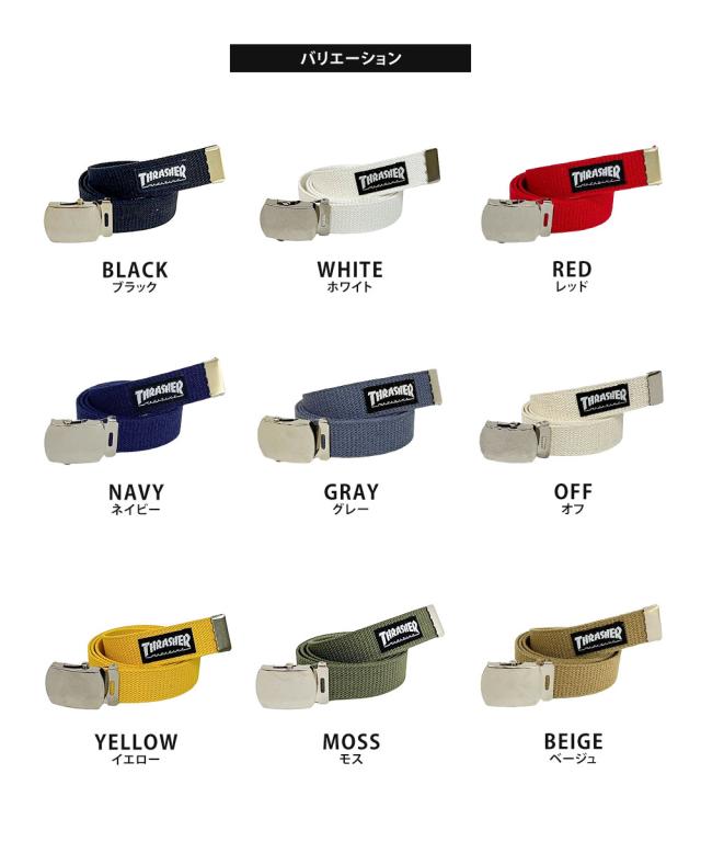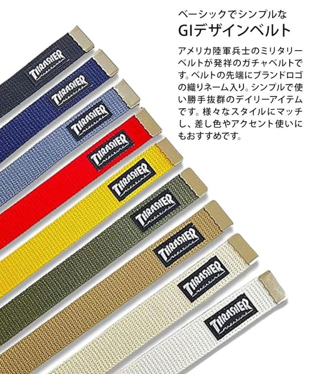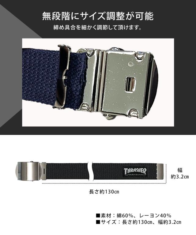 THRASHER スラッシャー ガチャベルト GIベルト メンズ レディース ブランド ロゴ ミリタリーベルト おしゃれ 穴なし ホールレス 無段階 ロック スポーツ アウトドア ファッション 黒 白 赤 ネイビー グレー カーキ ベージュ THR-003