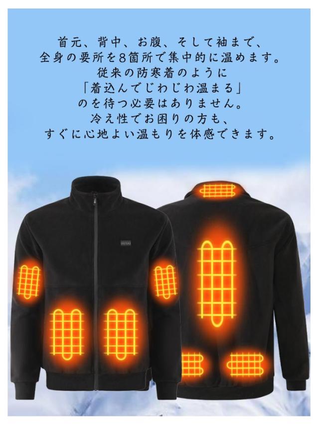 電熱ジャケット S-6XL 大きいサイズ 8箇所発熱 ボアジャケット USB給電 フリース ヒータージャケット 男女兼用 メンズ レディース 長袖ジャンパー 前後独立加熱 3段階温度調整 防寒対策 電熱ウェア 加熱ジャケット 速暖 通勤通学 屋外作業 作業着 冬 洗濯可