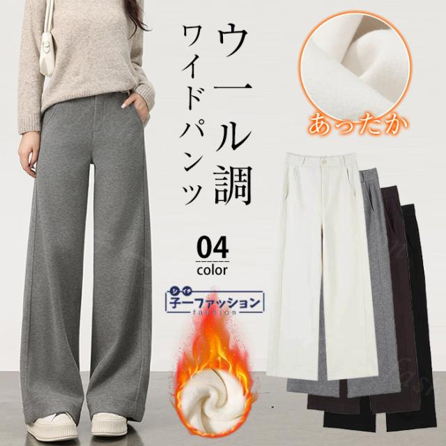 <1点3,650円!クーポン利用で> ウ一ル調ワイドパンツ 高見えワイドパンツ 冬新作 レディース ハイウエスト パンツ 裏起毛 厚手 ロングパンツ カーゴパンツ ゆったり 細見え 体型カバー カジュアル コーデ 着痩せ きれいめ 無地 ズボン 防寒 暖かい 美脚 着痩せ 通勤 通学