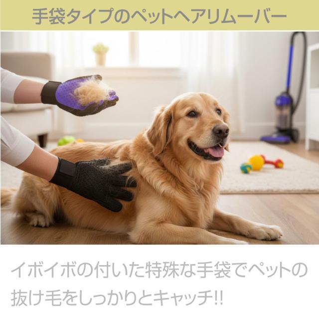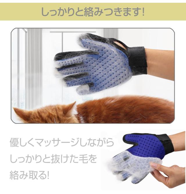 ペットの換毛期に大活躍! 毛玉を簡単除去できてストレスフリー! 撫でるだけのグルーミング手袋で簡単お手入れ 不快なブラシはもう不要!